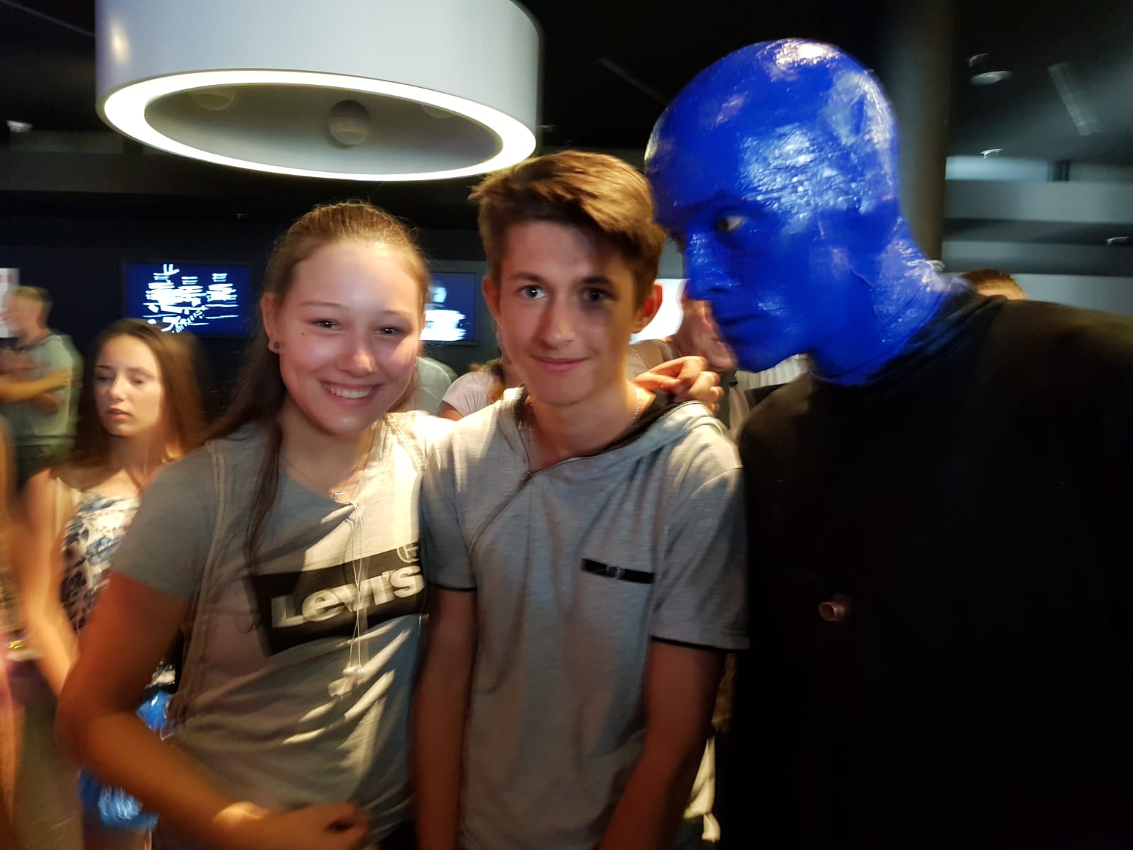 Nach diesem Schreck gönnte sich die Reisegruppe einen großen, (besser Mega!) Imbiss, vom eingesparten Geld und genoss satt und zufrieden die Blue- Man Show,