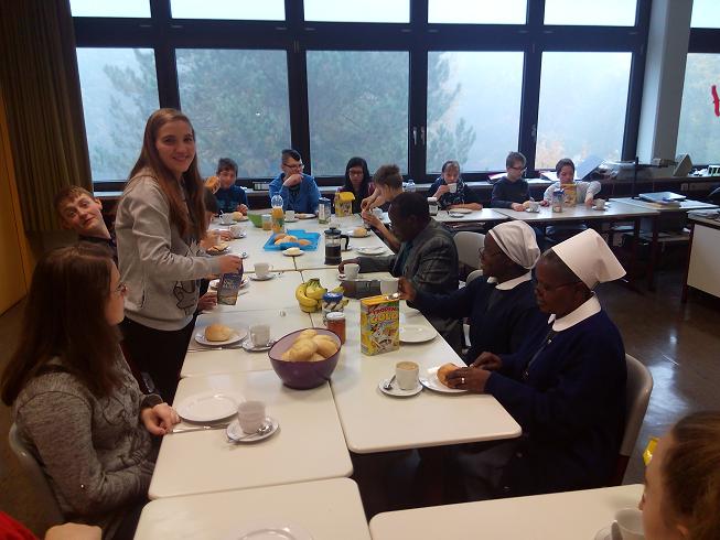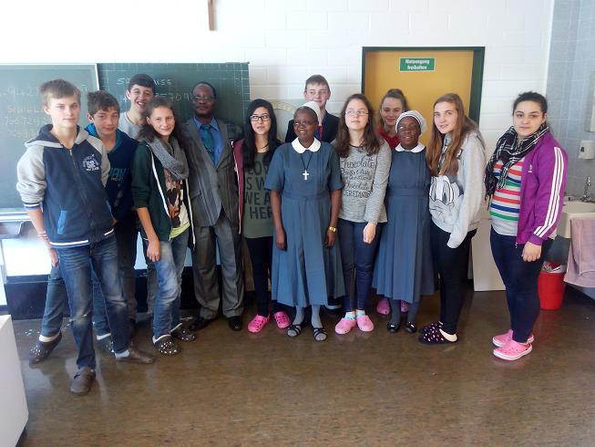 Drei Besucher aus Tansania, Pastor Eliad Siwelwer, Schwester Angelista und Schwester Agnes besuchten die Schüler der Klasse 9. Bei einem gemeinsamen Frühstück informierten sie sich über das Brutschrankprojekt, welches von den Schülern entwickelt wurde. In einem sehr persöhnlichen Gespräch konnten die Schüler Fragen über den Alltag der Schwestern stellen. Aber auch die Schwestern hatten Fragen an die Schüler. Insbesondere ihr Familienleben interessierte die Gäste aus Tansania. Das Verhältnis der Generationen untereinander ist in Tansania ein sehr wichtiges Thema. Bei jeder Begegnung wird sich zuerst über das Wohlergehen der Familie ausgetauscht. Die Schüler überreichten den Schwestern eine Spende von 40 Euro, die von der Tagesstätte noch erhöt wurde. Das Geld sammelten die Schüler durch das Sammeln von Pfandflaschen. Es kommt jetzt Kindern zu gute, denen Schwester Agnes eine Matratze zum schlafen kauft. Die kinder müssen auf dem blanken Boden schlafen und werden dadurch immer wieder krank. Besonders während der Regenzeit kann es in Ihahi empfindlich kalt werden. Weitere Infos zum Besuch der Schwestern in Günzburg hier.