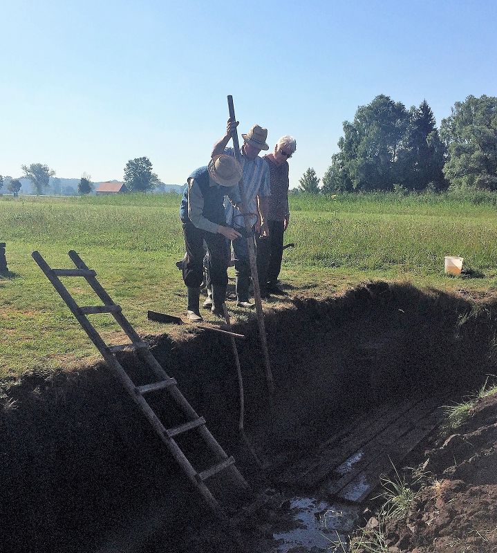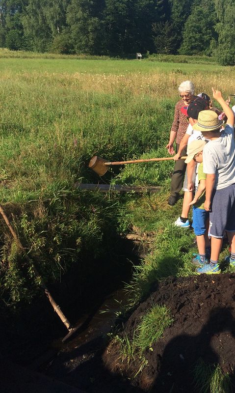 - Vor dem Torfstechen musste zuerst das Wasser abgeschöpft werden. Wir durften auch schöpfen.