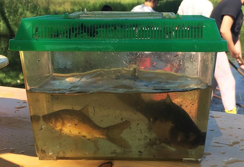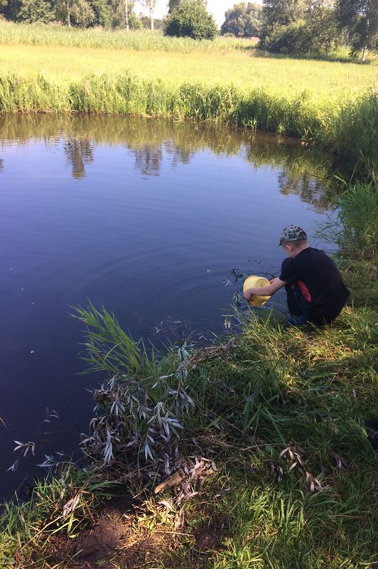- Mit Käschern versuchten wir allerlei Getier einzufangen.