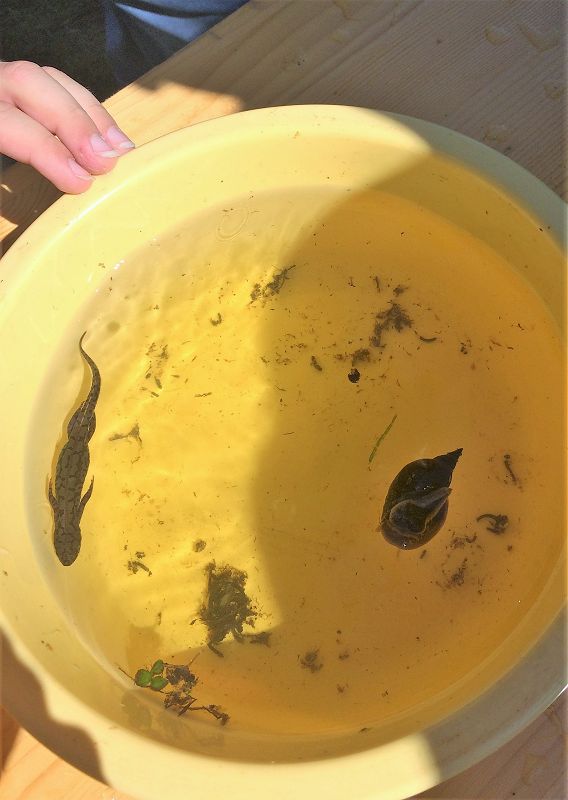 - Spitzkopfschnecken fanden wir viele, aber der kleine Molch war eine Besonderheit!